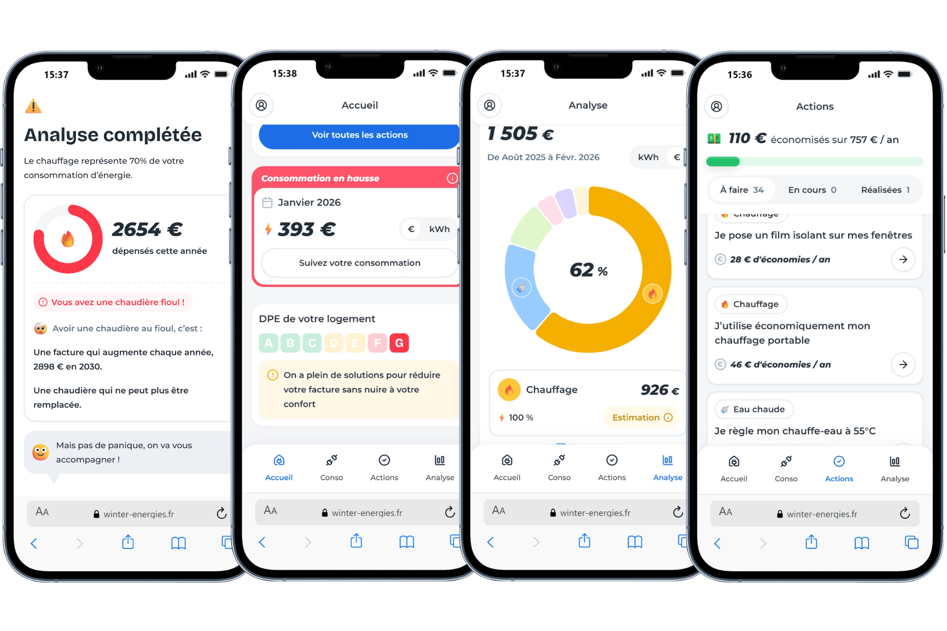 Pour les propriétaires, nous offrons une analyse gratuite et personnalisée de votre maison. Elle permet d'identifier quel est le problème de votre maison et combien d’économies vous manquez chaque année.