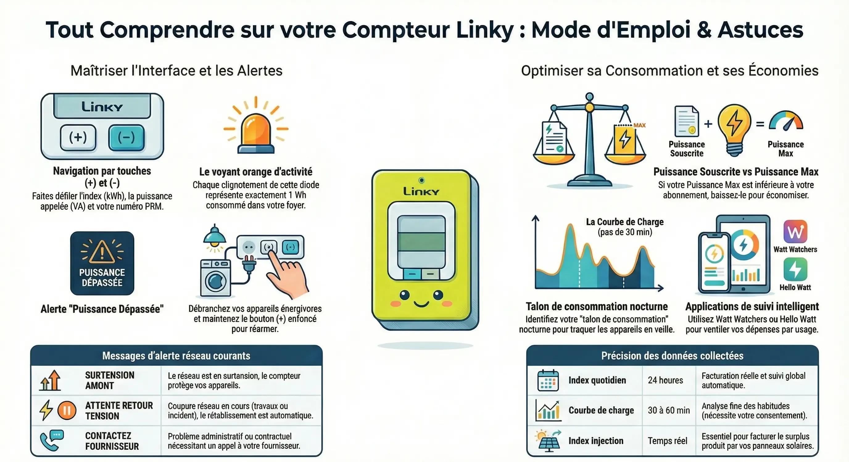 Ce signal est très pratique pour débusquer les sources de surconsommation. Si vous pensez avoir tout éteint mais que le voyant s'emballe, cherchez le coupable.
